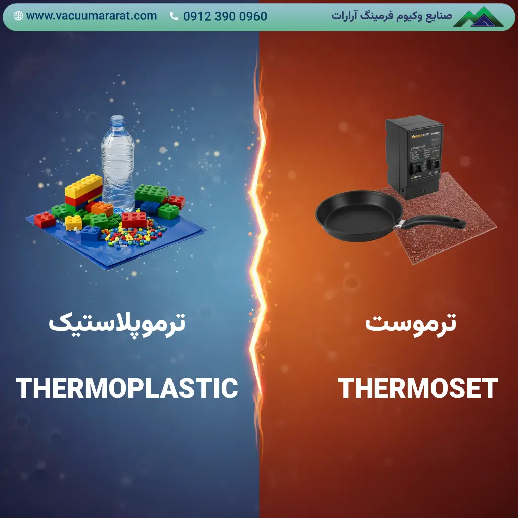 تفاوت اصلی ترموپلاستیکها با پلیمرهای ترموست (Thermosetting polymers) یا گرماسختها در ساختار شیمیایی و رفتار آنها در برابر حرارت است. گرماسختها طی فرایند پخت (Curing)، پیوندهای شیمیایی برگشتناپذیری ایجاد میکنند. بنابراین، وقتی گرماسختها حرارت میبینند، ذوب نمیشوند، بلکه معمولاً تجزیه شده و با سرد شدن دوباره شکل نمیگیرند یا قابل بازیافت نیستند. در مقابل، ترموپلاستیکها بهدلیل برگشتپذیر بودن فرایند نرم شدن و سخت شدن، قابلیت ذوب و شکلدهی مکرر را دارند که این امر آنها را بسیار قابل بازیافت میسازد.